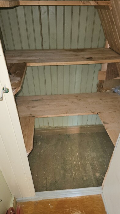 Man kan avsløre noen hemmeligheter med et hus med noen teknikker. Den enkleste er å spørre. I dette tilfellet visste megler lite, men jeg hadde noen mistanker. Et titt inn i et plassbygd skap, viste meg at det bak belegg og tapeter skjulte seg vakre tregulv og veggpanel. En avgjørende siste brikke for at jeg bestemte meg for å legge bud.