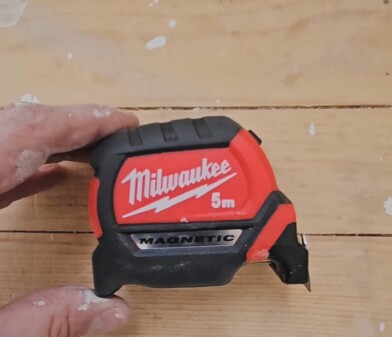 Apropos mål: Milwaukee sitt måleband er et nytt bekjentskap for Aarseth i denne prosessen. Når arbeidet krever millimeterpresisjon, blir et pålitelig målebånd uvurderlig. Mange har opplevd målebånd som enten er for svake, for korte eller som gir etter når man strekker dem litt for langt. Milwaukee tilbyr her en løsning som skiller seg fra mengden: et solid, bredt og stabilt målebånd på hele fem meter, som tåler røff bruk uten å kollapse.